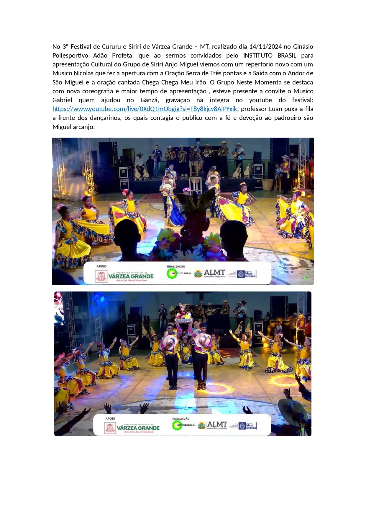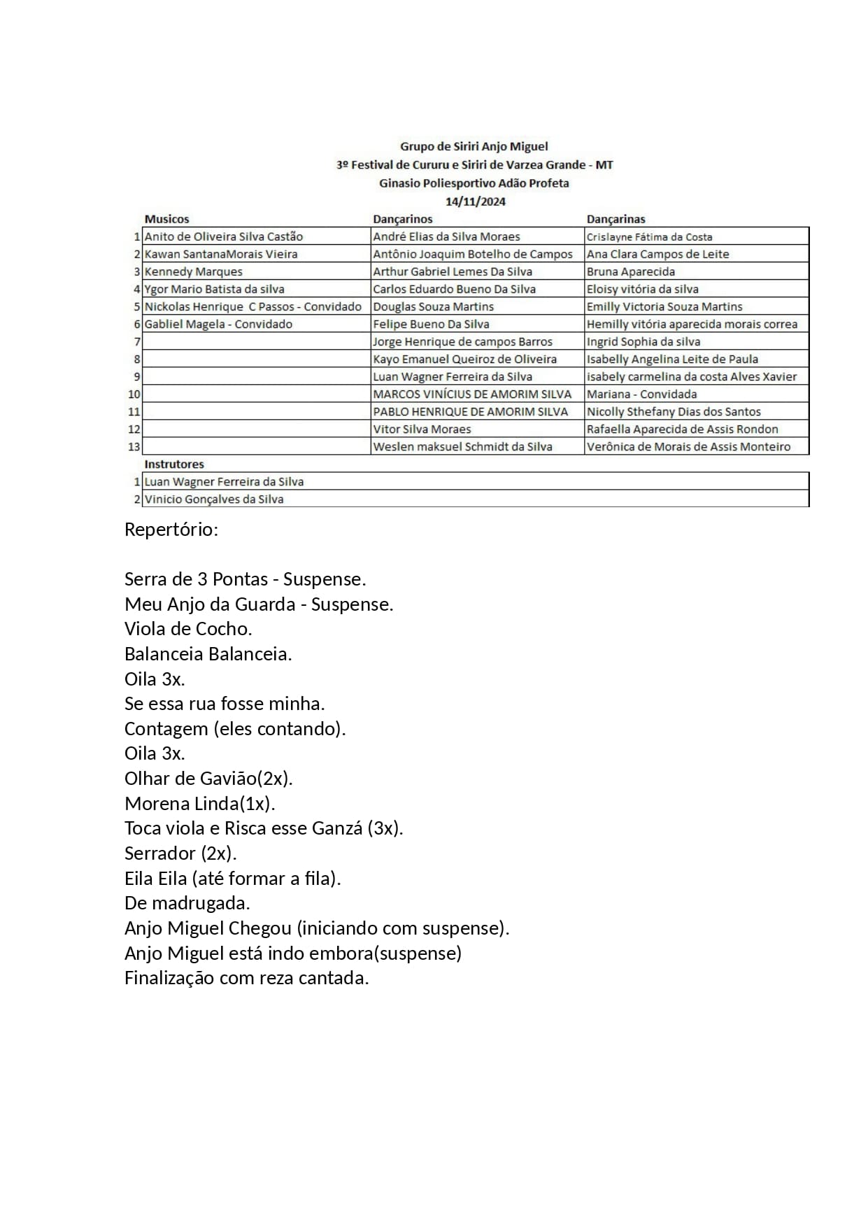 No 3º Festival de Cururu e Siriri de Várzea Grande – MT – 14/11/2024